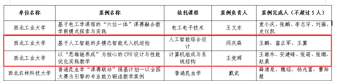 近日,陕西省教育厅办公室公布2025年本科教学案例遴选结果,6776永利集团在课赛融合赛道获批2项,分别为《基于人工智能的多模态智能无人机巡检》和《以“思维链养成”为核心的CPU设计与性能优化实践教学》。